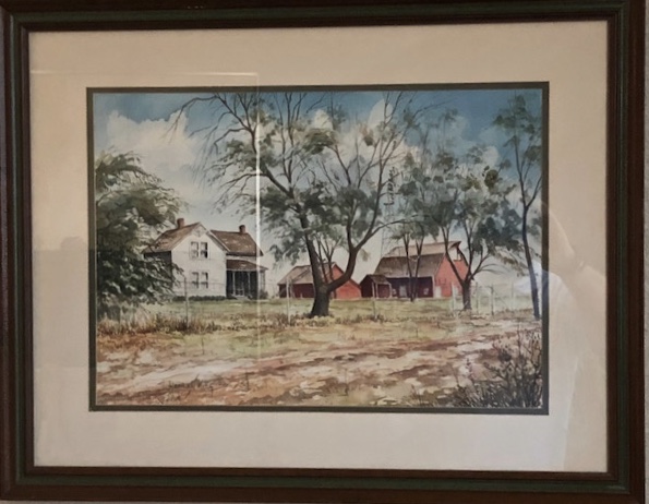 This picture was commissioned by one of “the aunts” back in the 80’s. I’m not sure where it was before it was given to my sister, Sue. If I was totally honest, I’d have to say I really don’t remember seeing it before she brought it to me in Colorado. It must have been in Omaha at Aunt Marie’s. After Marie died the “Homestead” began its journey. First to Sue’s in Waterloo, then to our house in Colorado, back to Iowa after we sold our house, and now with me again, this time, in Texas.